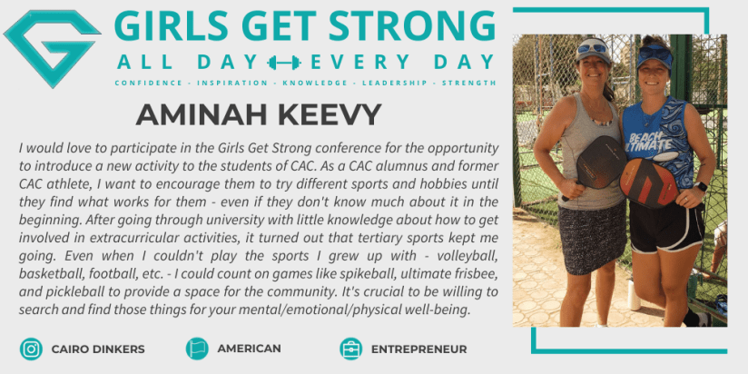 | Athletics | Main Gym | 0 | Pickleball | Aminah Keevy |